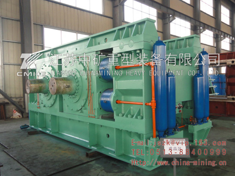 輥壓機由機架、兩個輥系、傳動裝置、扭矩支承、輥罩、進料裝置、液壓(加壓)系統、主軸承潤滑系統、干油潤滑系統、電氣系統等部份組成。