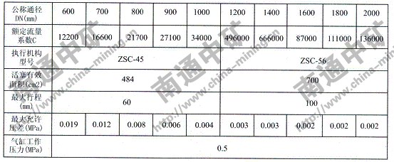 *注:閥門開席為70°時(shí)的允許壓差值