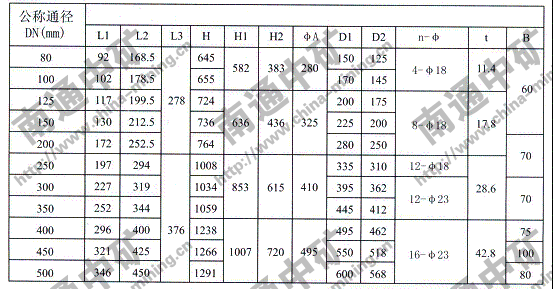 公稱通經(jīng) | 法蘭式DN50~DN600 |