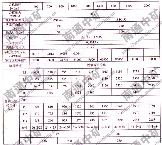 ZSCW-0.6k/b型氣動(dòng)調(diào)節(jié)蝶閥外形尺寸: